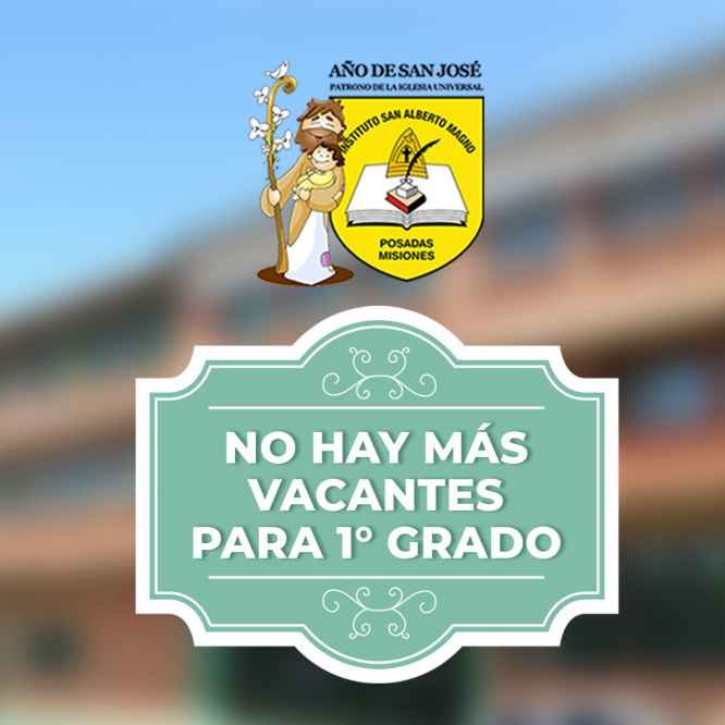 Estimadas familias: Les informamos que las vacantes para el 1° grado de Nivel Primario han sido completadas en ambos turnos. Desde ya, muchas gracias por la preferencia.